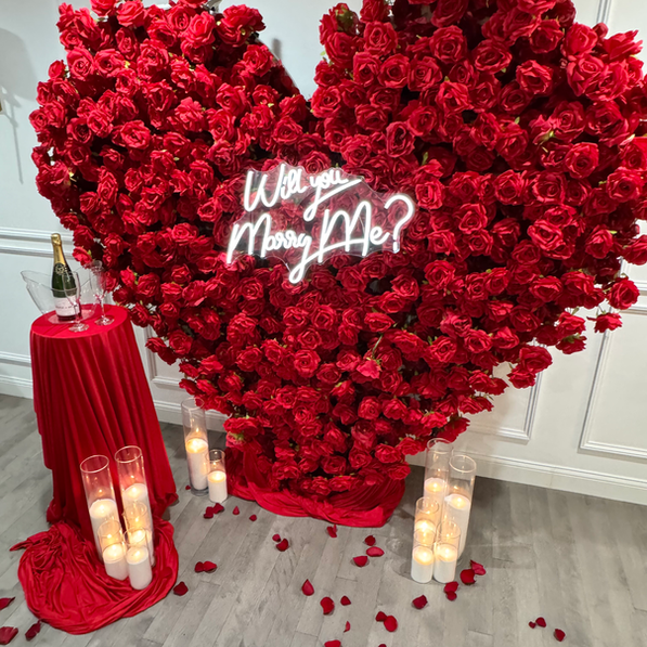Ask us about our Proposal Package which includes a "Will You Marry Me?" neon sign, candles, real roses, red carpet and rose pedals - $699